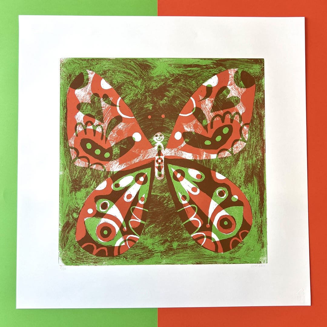 I’ve put the remaining ‘Butterfly’ screenprints up in my online shop. Screen printed by ‘Studio All Day Long’ on Southbank Smooth 250gsm paper, this is a limited edition of 20. The artwork layers were hand-created by myself - no digital process involved at all - using paint and scraping tools on toughened glass, which was then exposed onto screens, ready for printing. You can watch my creative process here.